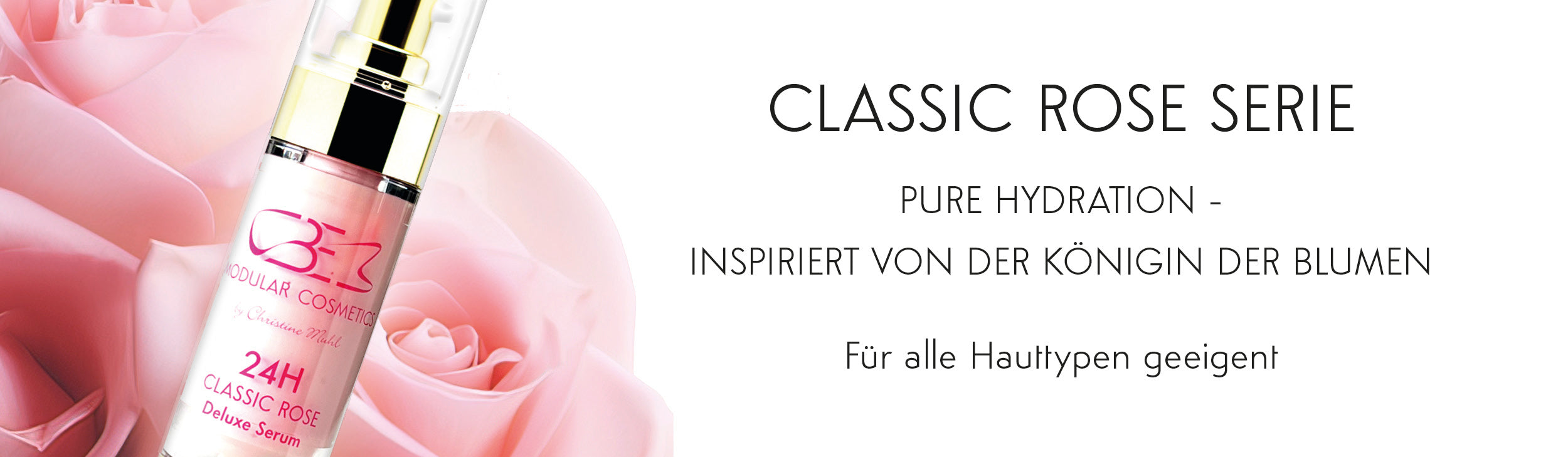 Erleben Sie pure Hydration auf höchstem Niveau. Die Classic Rose Serie verwöhnt Ihre Haut mit kostbarem Bio-Rosenwasser, versorgt sie tiefenwirksam mit Feuchtigkeit und nährt intensiv und rückfettend mit Jojobaöl und Mandelöl.