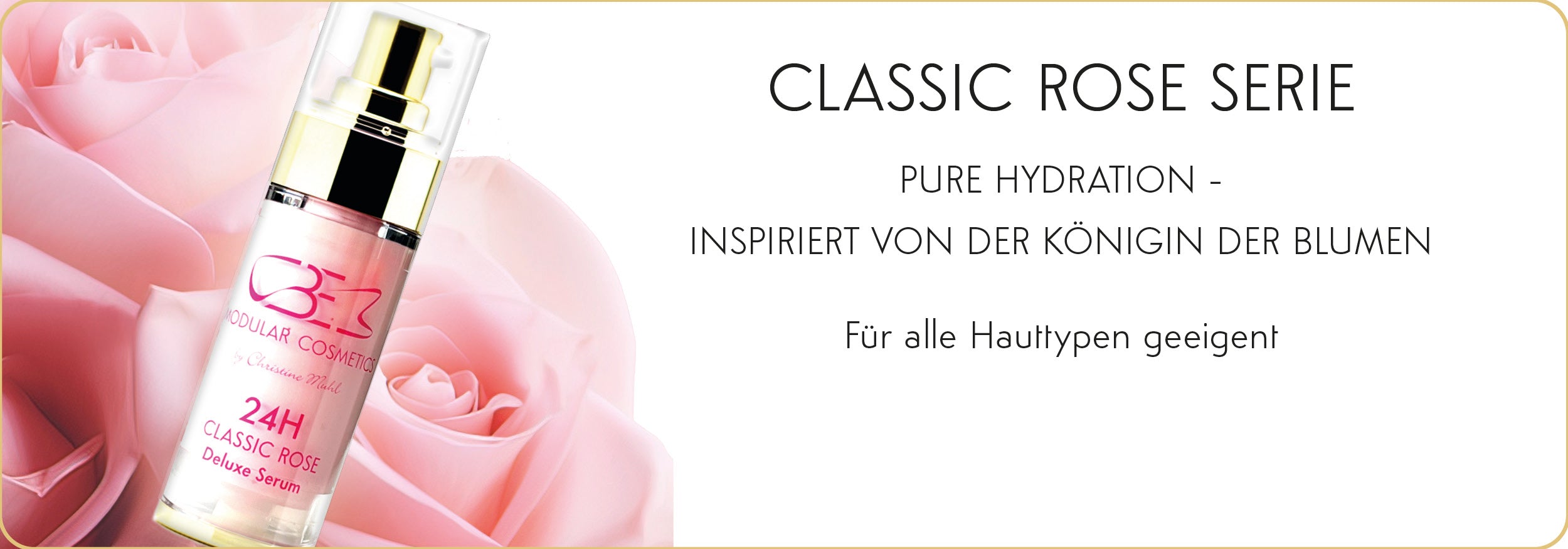 Erleben Sie pure Hydration auf höchstem Niveau. Die Classic Rose Serie verwöhnt Ihre Haut mit kostbarem Bio-Rosenwasser, versorgt sie tiefenwirksam mit Feuchtigkeit und nährt intensiv und rückfettend mit Jojobaöl und Mandelöl.